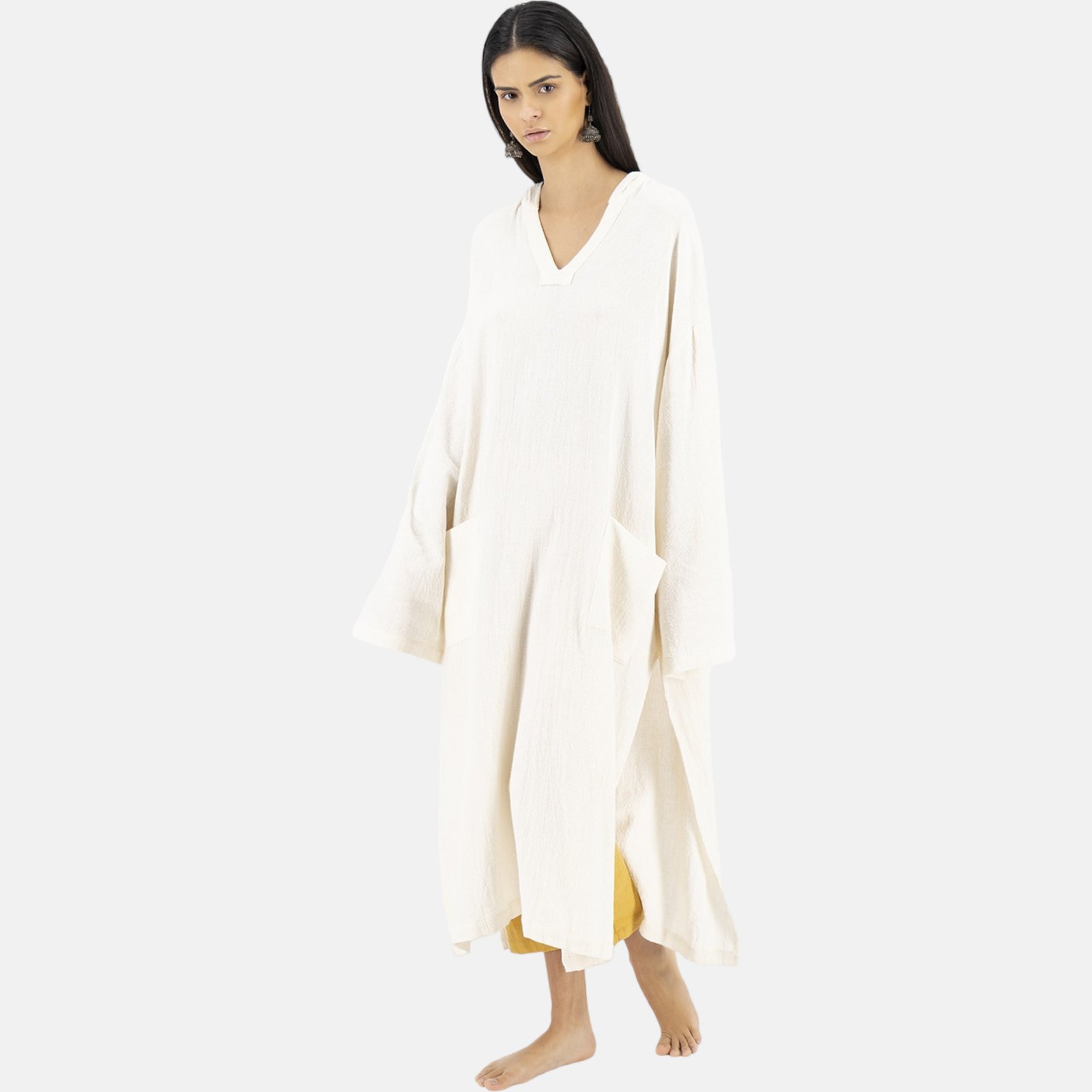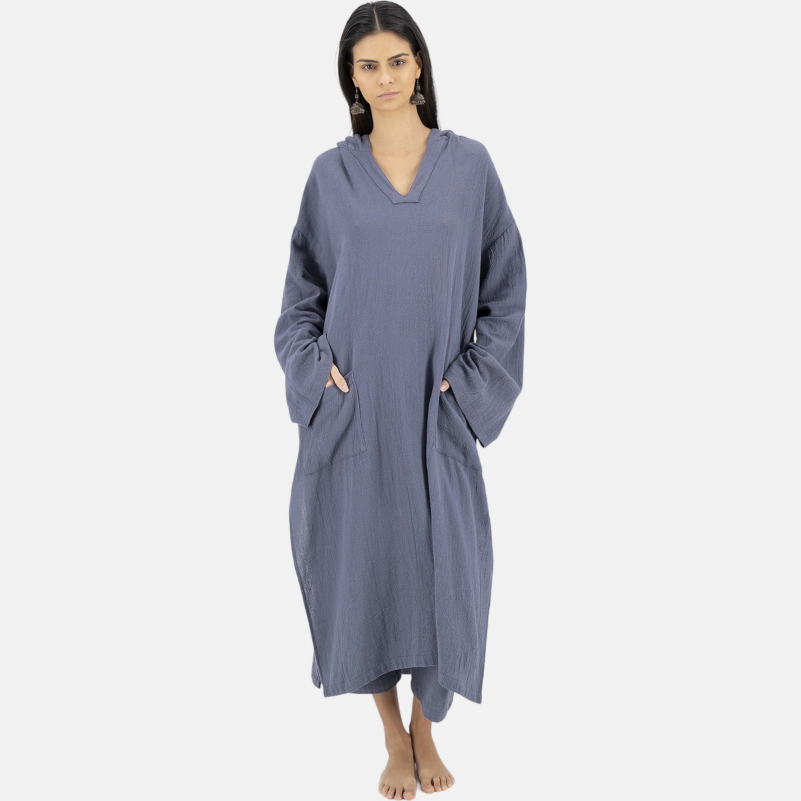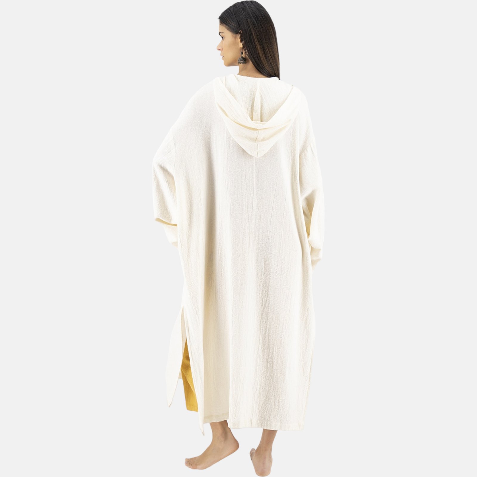 Con una confección hecha en su totalidad en México, nuestra colección Kali presenta para ti, esta capa con capucha que no querrás dejar ir. Sin dejar atrás a nuestra inspiración queremos presentarte esta prenda. Características: Tela con microdiseño, fresca, cómoda y ligera de usar. Llega hasta el suelo, tiene bolsillos amplios, una capucha amplia y abertura a media pierna. Sus colores la convierte en un básico y en el ideal para disfrutar de tus tardes en la playa disfrutando el atardecer. Conviertéla en tu mejor accesorio